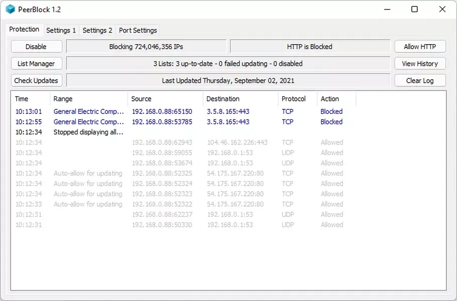 PeerBlock — это фаервол, который позволяет блокировать IP-адреса на основе заранее определенных списков. Это может помочь предотвратить нежелательное соединение с определенными адресами, которые могут быть связаны с шпионскими программами или вредоносным ПО.