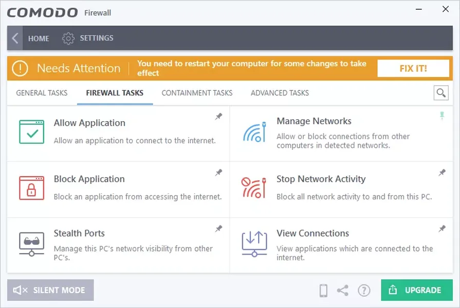 Comodo Firewall имеет полезные функции, такие как виртуальный интернет-серфинг, блокировщик рекламы, пользовательские