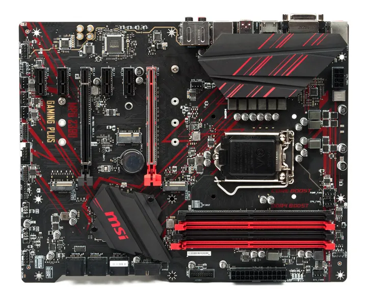 MSI MPG Z390 Gaming Plus - это материнская плата Z390 по привлекательной цене. Не ожидайте чудес по этой цене, но все необходимое здесь - возможность разгона, слот M.2 PCIe 3.0, USB 3.1 Gen2 и даже светодиодная подсветка. Также имеется второй разъем M.2 специально для модулей Intel Wireless-AC (CNVi). Есть три выхода изображения (DVI, D-Sub и DP) для встроенной графики, но HDMI отсутствовал.