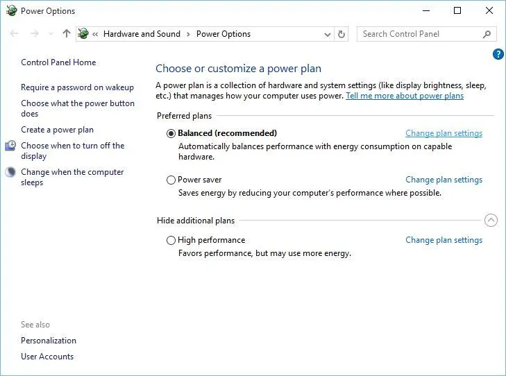 Решение 4. Измените настройки питания